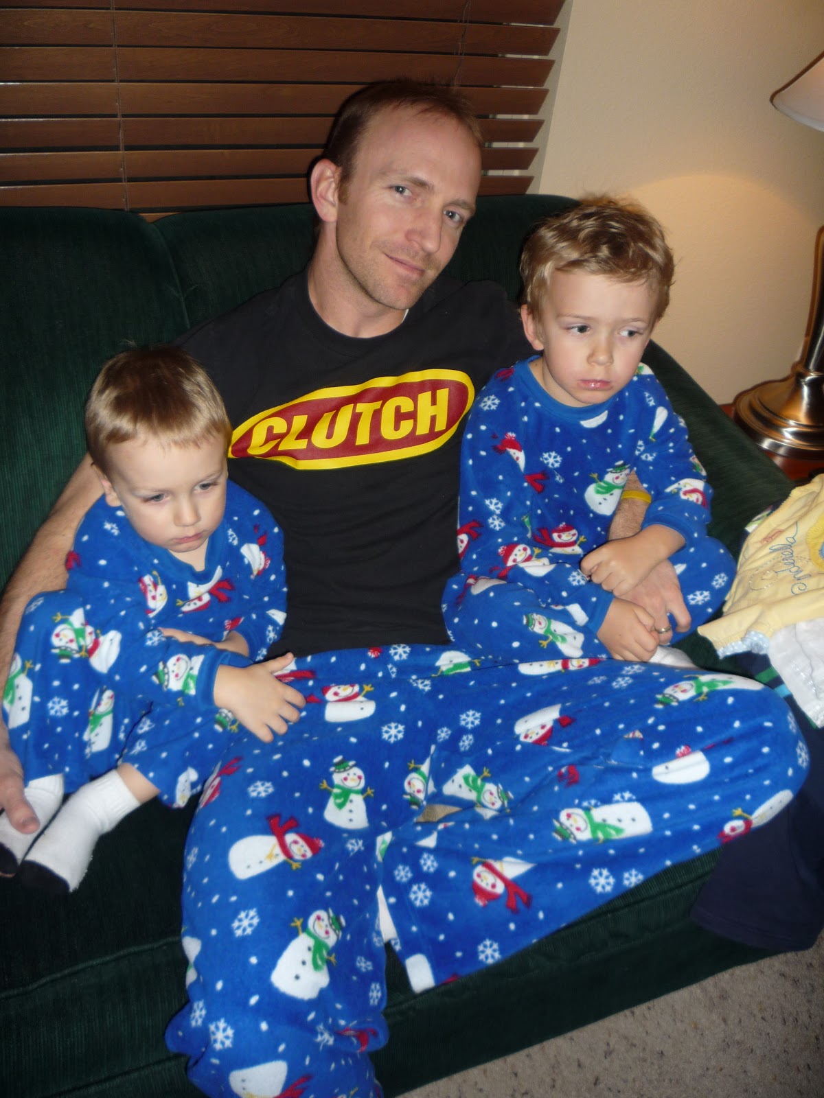 Jacob said to me, "look, I can sit on the couch like Daddy now." Meaning he can reach his feet over to the coffee table while on the couch.