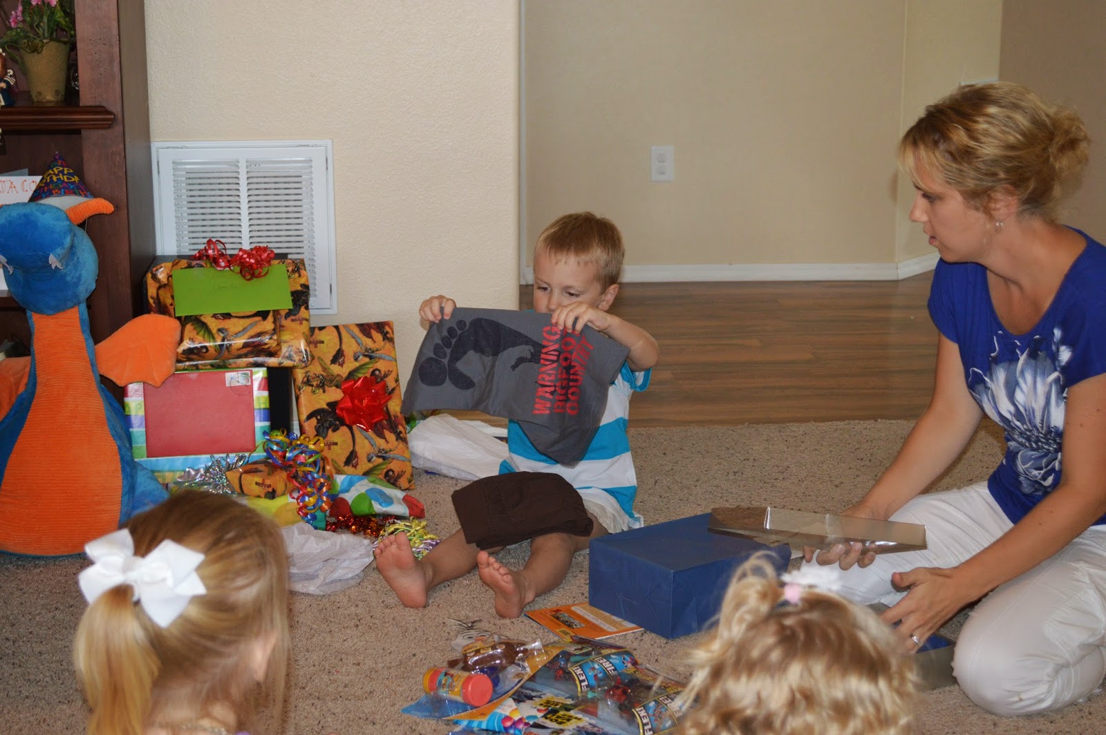 Jacob is still such a sweet boy! He is very affectionate and loves to cuddle with everyone. He plays with his brother and sisters all day and also loves to play with his friend Sammy. We say this every year but he still knows no strangers. He loves talking to everyone and meeting new people. He loves apples and eats one every day. He usually eats them while laying on the kitchen floor. He loves making people laugh and loves to wrestle with his Daddy. He owns pajamas, but always wants to wear one of Daddy's t-shirts to bed. He's such a blessing to our family! We love you, Jacob!