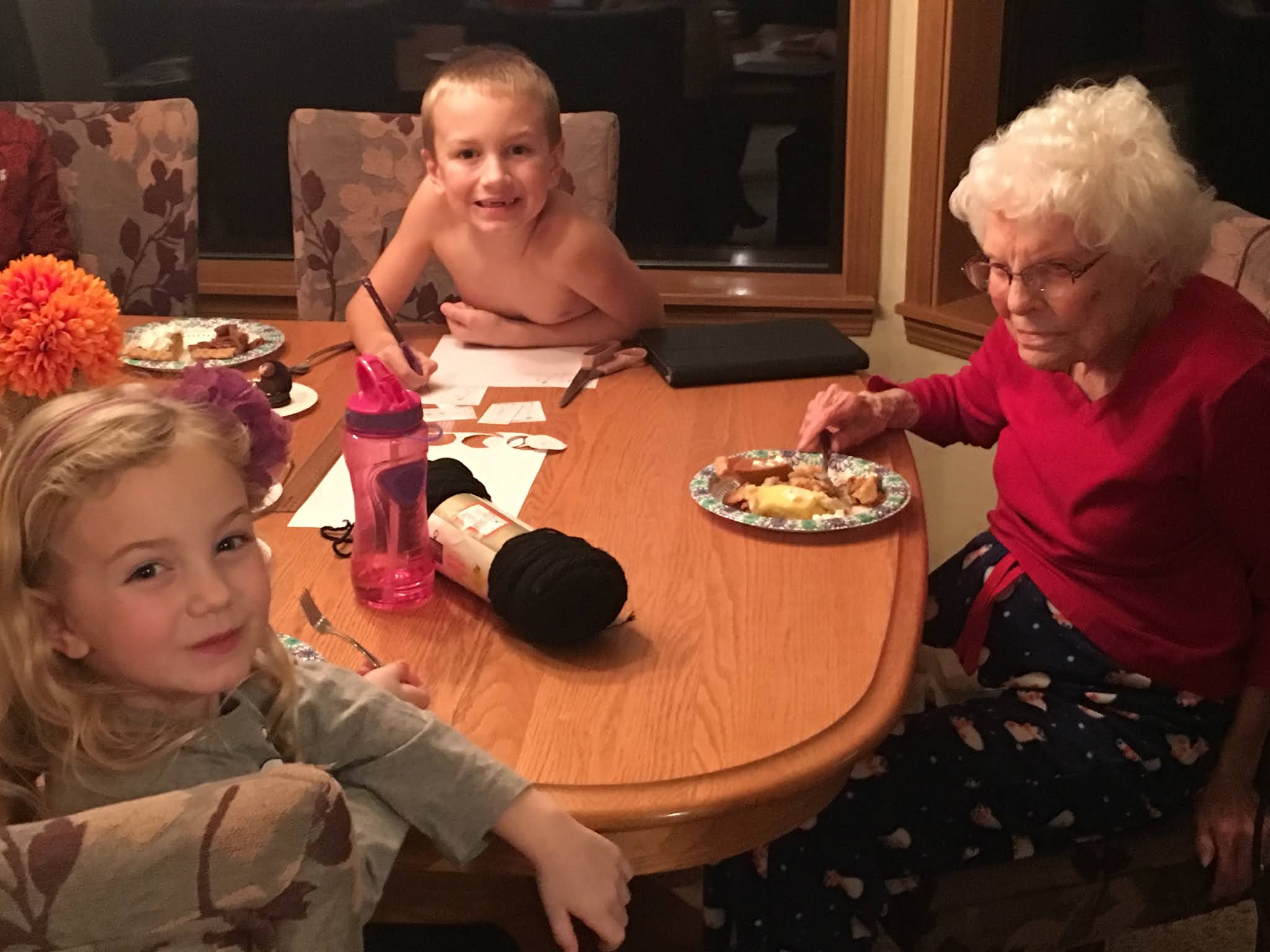 We were so excited to have Papa, Nini, and Grandma Jones come up and spend Thanksgiving with us this year. It was hard on Grandma Jones to travel but we were so grateful for the time we had with her. We made some little cookie turkeys. Mackayla made the apple pie and Jacob made the banana creme pie. We had a delicious dinner. Grandma wasn't feeling very well so she spent a lot of the day in bed. We felt so bad for her but we're so glad she made the trip up to see us as it was the last time we got to spend time with her. We did get a super cute picture of her and Jared wearing matching outfits!